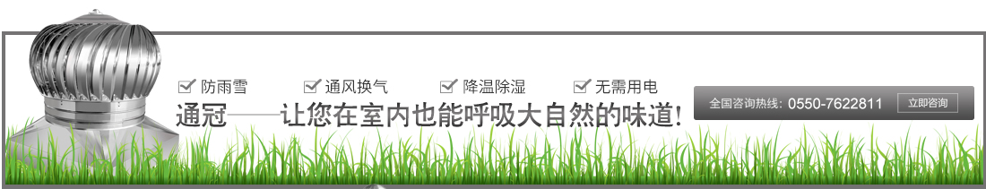 天長市通冠無動力風(fēng)機有限公司,是集研發(fā)、生產(chǎn)、銷售于一體的,專業(yè)無動力風(fēng)機生產(chǎn)廠家。公司坐落于205國道南京與揚州之間,位于省級高新經(jīng)濟技術(shù)工業(yè)園,交通便利。“通冠”有著一支技術(shù)精湛、服務(wù)非凡的隊伍。所有一線技術(shù)工人技術(shù)熟練、質(zhì)量意識強。公司嚴格執(zhí)行ISO9000質(zhì)量管理體系,一貫貫徹“以質(zhì)量為生命”、“以信譽為根本”、“以服務(wù)為基礎(chǔ)”的理念···[查看詳細]